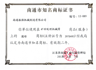 江蘇振強機械科技股份有限公司 >> 公司簡介 >> 資質(zhì)證書 >> 南通市知名商標(biāo)證書
