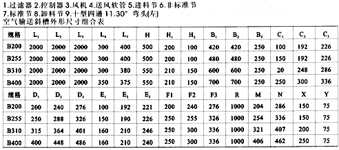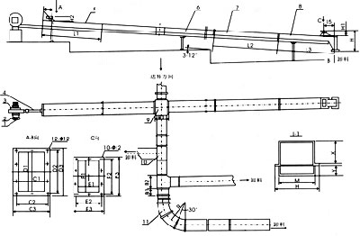 空氣斜槽輸送機(jī)由數(shù)個(gè)薄鋼制成的槽子聯(lián)接組成,并沿其輸送方向布置成一定的斜度。空氣輸送斜槽槽體沿著輸送方向安裝成向下傾斜4%~6%的斜度。